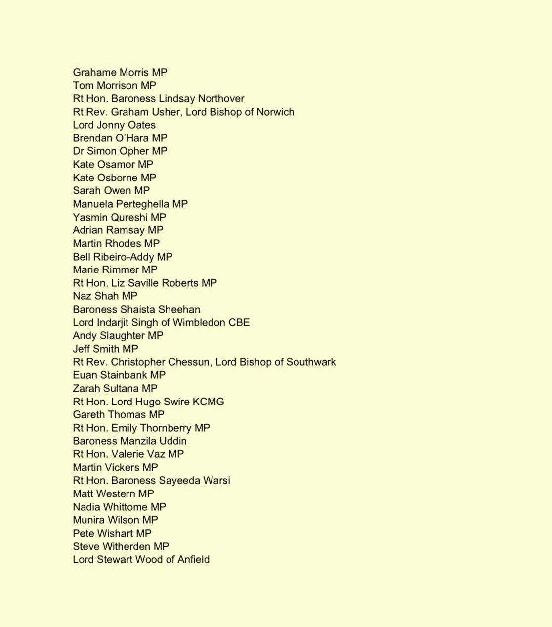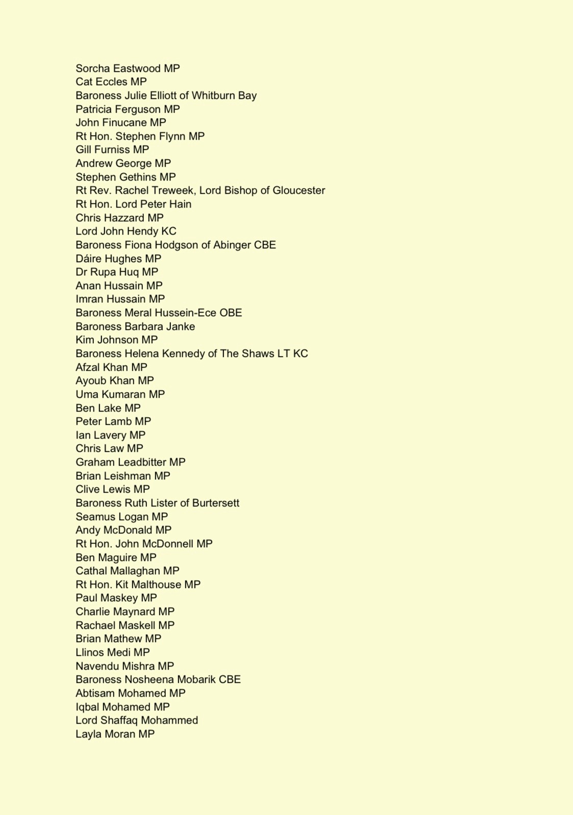 Since the letter was sent, the following Parliamentarians have also added their names to the letter:
